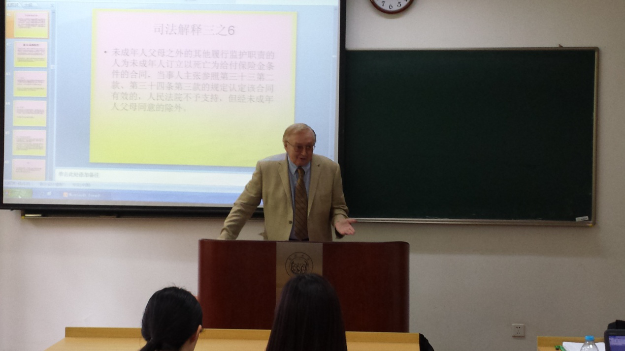 美国西北大学yl9193永利客座教授、Minton 律师事务所主任Michael H. Minton,5月30日上午应邀给公司2015级研究生作了“美国婚姻家庭法”的学术讲座。Minton教授以诙谐、幽默的语言,讲述了美国婚姻家庭法体现的精神和原则,并不时以生动的案例,给同学以耐人寻味的启示。讲座结束后,Minton教授还认真、仔细解答了员工的提问。