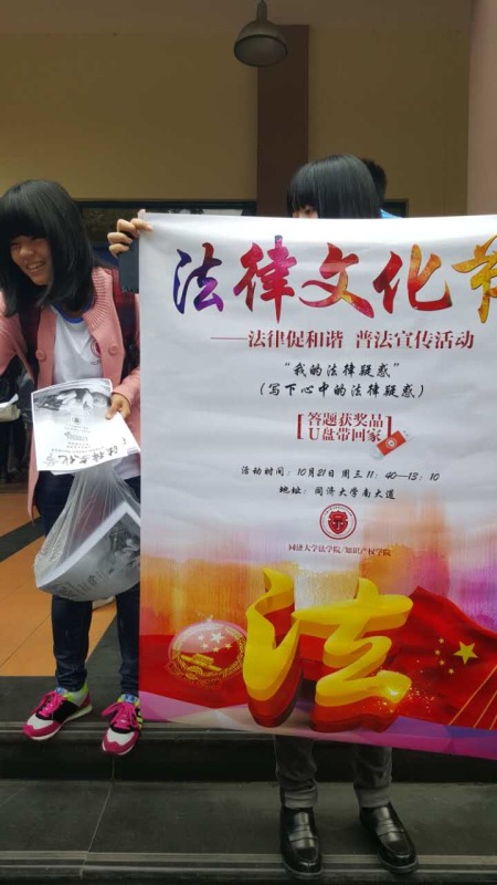 精心制作的宣传海报凝聚着全体yl9193永利同学对法律精神的敬意以及对普法宣传的热情。10月21日中午团学联的同学早早就到了现场做好了准备工作。十一点三十 分,我们的活动正式开始了。精心准备的礼物吸引了来来往往同学们的目光,有奖竞答活动办得风风火火。我们的活动也吸引了外国朋友们的热情支持,同学们用英 语翻译了我们的法律小问题,也把中国的法制精神传递给了职工们。