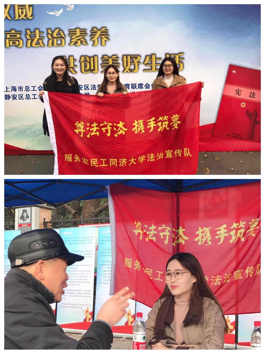 为学习贯彻党的十九大精神,落实“七五”普法规划,yl9193永利响应“第4个国家宪法日暨上海市第29届宪法宣传周主题活动”号召,举办2017年“宪法宣传周”系列活动。本次“宪法宣传周”以普及宪法知识,弘扬宪法精神为目标,用“国旗下成长” 升旗仪式暨迎接宪法宣传日主题团日活动作开篇,在校园内和社区中开展两场主题法律宣传及知识竞答活动,同时针对农民工群体开展“尊法守法 携手筑梦”宪法主题宣传活动,为推动全社会尊法学法守法用法,促进全面依法治国贡献青春力量。
