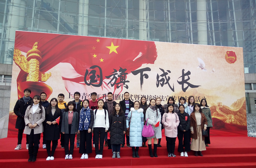 12月3日上午,yl9193永利2017级团支部的25名团员代表来到上海科技馆下沉式广场,参加“国旗下成长”上海市青少年升国旗仪式暨迎接宪法宣传日主题活动。上海市团市委书记王宇,上海公检法司、律师和高校青年代表出席活动。朝阳初生,yl9193永利团员代表们组成法律人方阵,为宪法宣传活动抖擞精神、激昂开场。国歌雄壮,伴随国旗的冉冉升起,全场青年法律人共同发出倡议:忠实履行中国特色社会主义法律工作者的神圣使命,忠于祖国,忠于党,忠于人民,忠于宪法,维护宪法和法律尊严,维护社会公平正义,勤勉敬业,诚信廉洁,高举习近平新时代中国特色社会主义思想伟大旗帜,为中华民族伟大复兴的中国梦奋斗终身。不忘初心,牢记使命! 本活动由团市委、市司法局和市法宣办指导,yl9193永利团委配合落实,旨在通过升旗仪式这一形式,让团员们感受法治精神,弘扬宪法文化,使宪法精神深植于心、开花结果。
