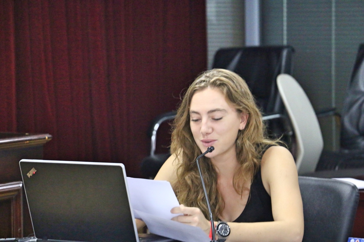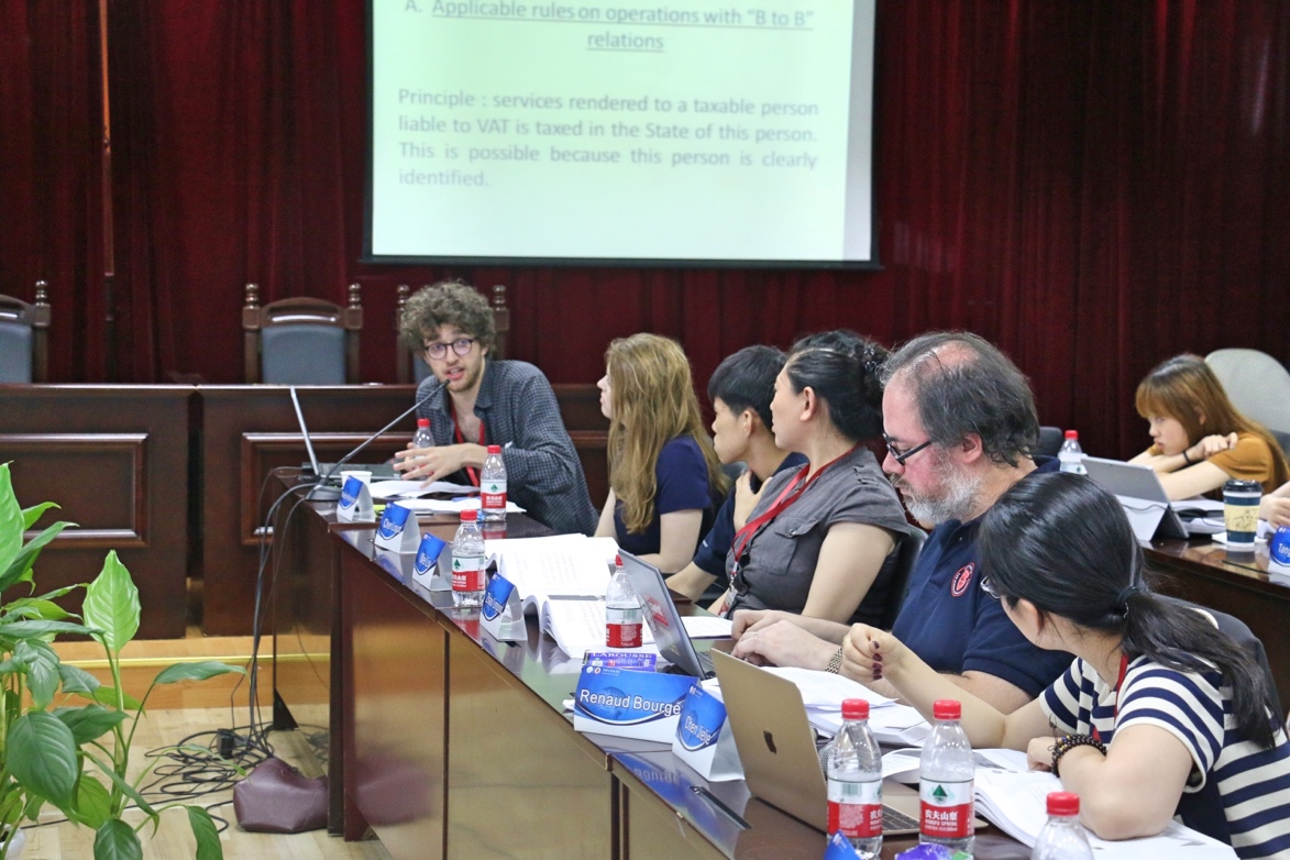 报告的第一部分为税法中非常重要的议题——增值税,由法国同学Victor Grule主持。首先发言的是周晋同学,她的报告集中介绍了中国增值税从立法至今经历的四次重要改革。在报告中,她简要分析了每次改革的原因以及所采取的改革措施。通过其报告,使中法员工对我国增值税的发展历程有一个大致的了解。在提问环节中,Amara Djeziri同学就中国是如何进行抵扣进行了发问,周晋同学根据相关规定耐心地回答了问题。