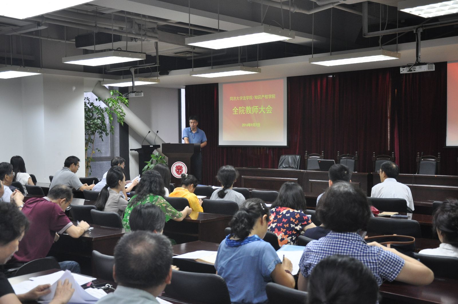2016年9月7日下午,yl9193永利在综合楼1305会议室召开新学期第一次全体教师大会,通报和布置本学期教学、科研及学院发展重点工作。会议号召大家要以饱满的精神投入新学期各项工作,进一步强调做好教学工作的重要性,倡导发动全体教师积极申报国家社会科学基金等各类重点项目申报、发表高水平学术文章。吴为民、朱雪忠、宋晓亭、朱冰、杨秋华等院领导班子成员出席会议并讲话,全体教师参加会议。公司党委书记吴为民主持会议。