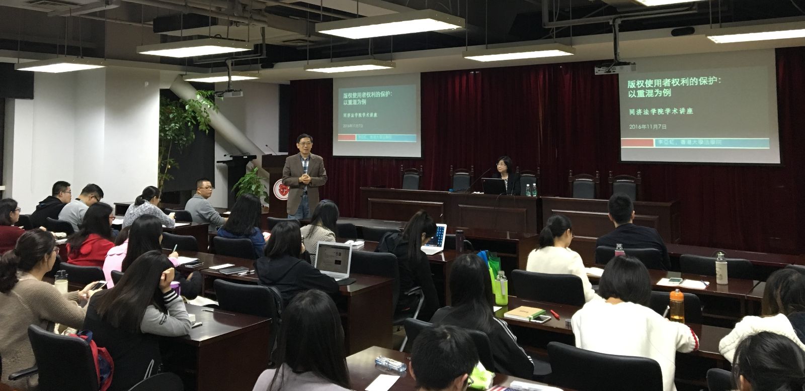 本次讲座前,公司朱雪忠教授和宋晓亭教授会见了李亚虹教授,就知识产权最新发展、学术交流合作等事宜进行了探讨和商议。讲座由宋晓亭教授主持,袁秀挺副教授、华劼老师参加了讲座。