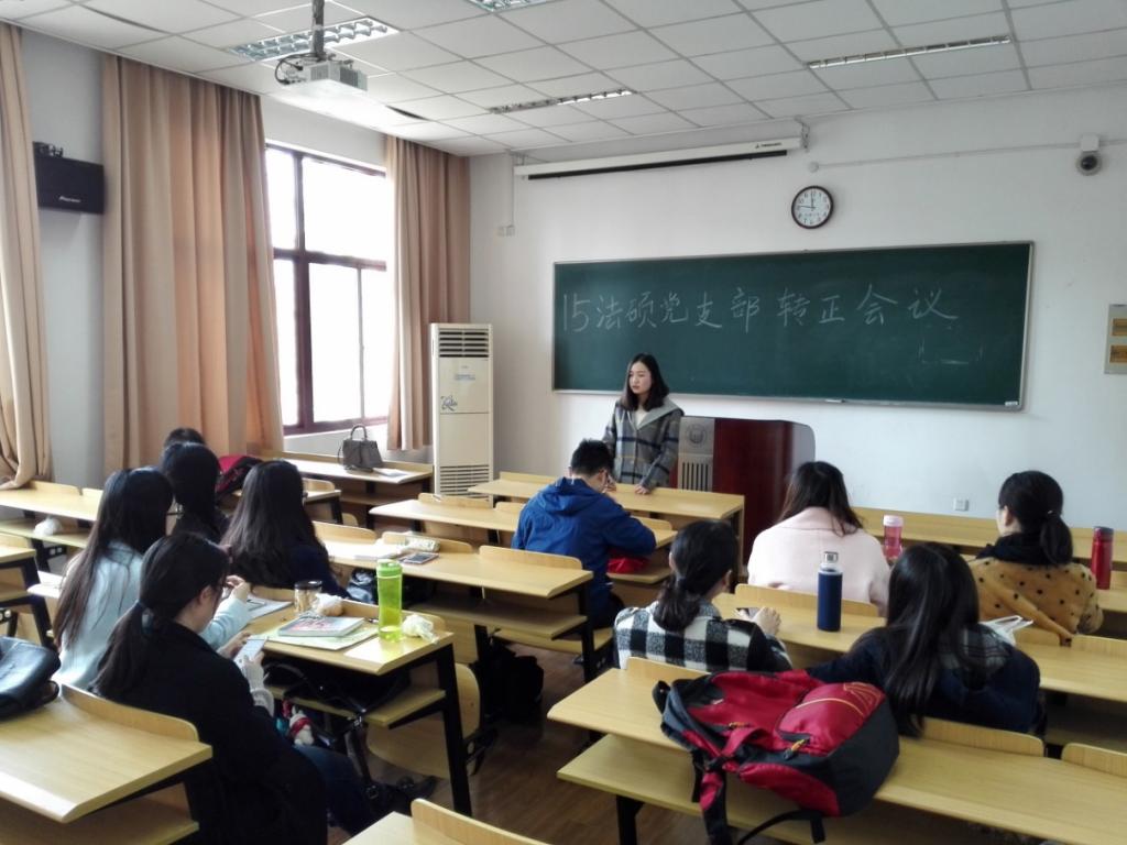 随后,党支部转正会议正式开始。本次转正的三位预备党员依次进行了自己的转正发言,主要陈述了自己在半年多研究生期间的思想动态与实践活动情况,成为一名正式党员后将为党支部发挥哪些作用,以及对今后党支部民主生活的期待与建议。