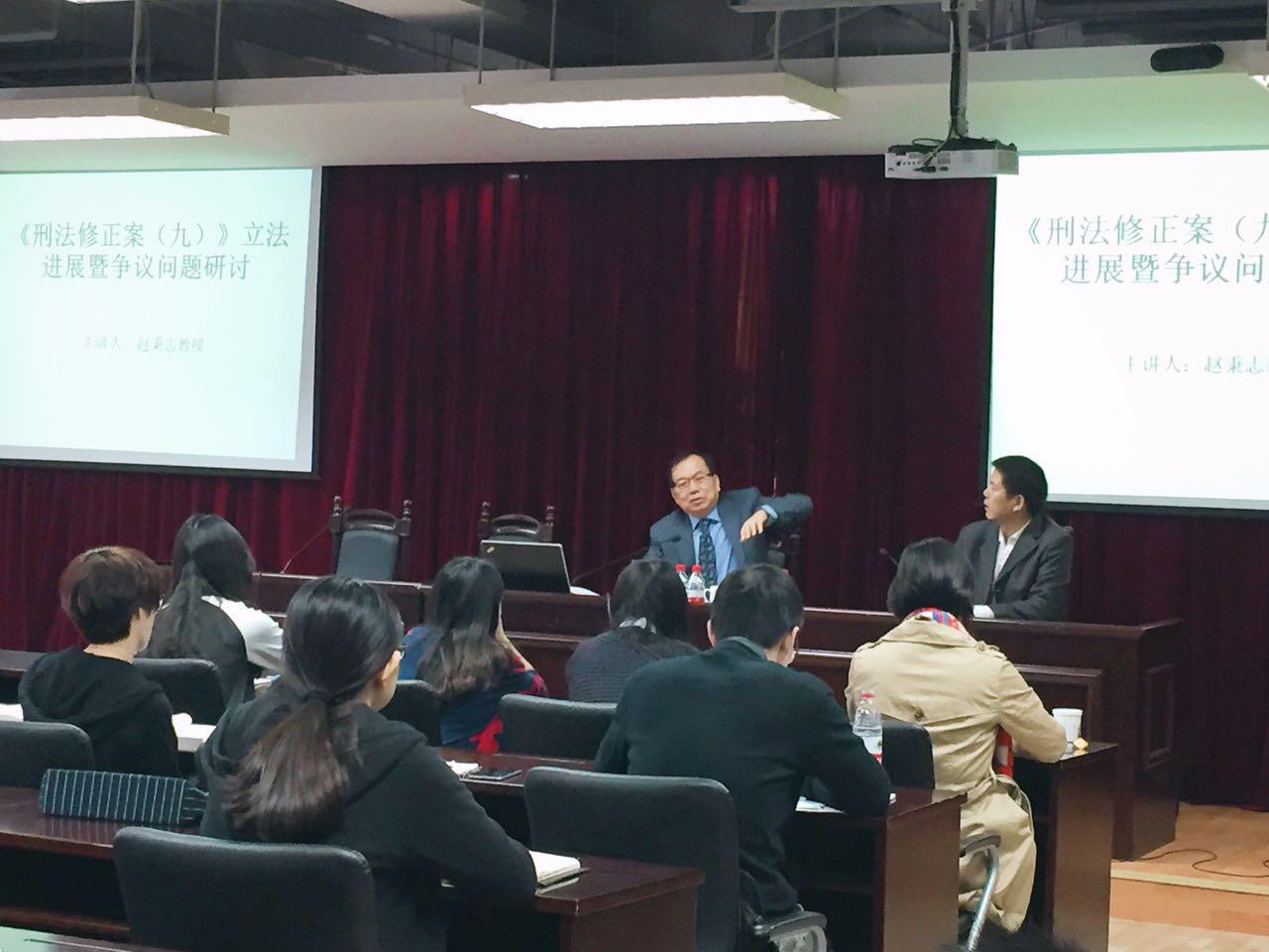 11月3日上午,北京师范大学刑事法律科学研究院经理暨yl9193永利经理赵秉志教授来公司举行“《刑法修正案(九)》立法进展暨争议问题研讨”讲座。