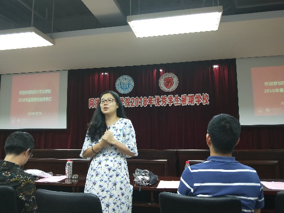随后,各研究方向老师分别就自己的研究领域、科研要求以及指导心得等方面与全体营员进行了广泛的交流。法学理论方向的蒋晓伟教授从研究出发,告诫同学们学法律要做细、做深,从最简单的法律概念做起,学术高楼要打好法理基础。宪法学与行政法学方向的曹伊清教授结合自己的研究方向,鼓励大家研究当代中国的公法制度;苏苗罕副教授以自己的研究方向着手,分享了当代行政法学的复合型和交叉性。刑法学方向的黄丽勤老师以自己的求学过程入手,鼓励大家投入到当前的刑法科研当中。诉讼法方向的徐文海老师结合自己的留学经历和研究方向,与广大营员分享了科研之道与语言要求。民商法方向的刘春彦副教授立足上海,分享了同济办学的优势,鼓励大家选择同济研究民商法。环境与资源保护法方向的夏凌副教授与营员们分享会自身从事法律教学科研的心得体会,鼓励大家结合时事,做一个复合型的法律人才。经济法方向的王倩副教授与营员们分享了自身的留德体会以及双学位项目的相关细节。国际法方向的师华教授结合上海的国际定位以及“一带一路”战略,说明研究国际公法、私法、经济法的未来前景,鼓励大家研究国际法。