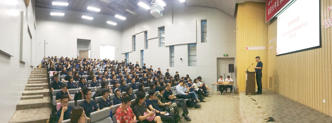 2018年9月8日上午,yl9193永利2018级新生开学典礼在衷和楼四楼报告厅举行。公司党委书记吴为民,副经理朱冰出席会议并致辞。袁秀挺作为教师代表、杨有娟作为老生代表、施子涵作为本科新生代表、刘宣廷作为硕士新生代表在会上先后发言。副经理徐钢出席会议。公司党委副书记、纪委书记杨秋华主持会议。10多位教师代表,全体本科新生、全体全日制硕士新生、职工代表等约160人出席开学典礼。