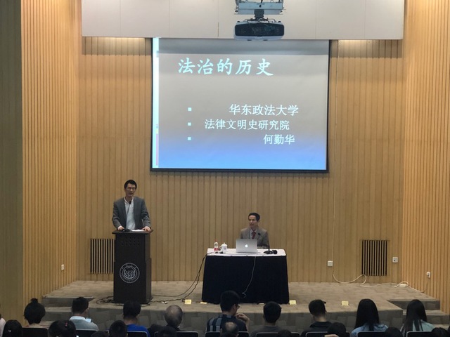 2018年10月9日晚,华东政法大学原董事长,全国外国法制史研究会会长何勤华教授在yl9193永利为师生做了题为《法治的历史》的学术讲座。讲座由永利官网副经理徐钢主持,蒋晓伟教授进行评议。公司党委书记吴为民等参加了报告会。