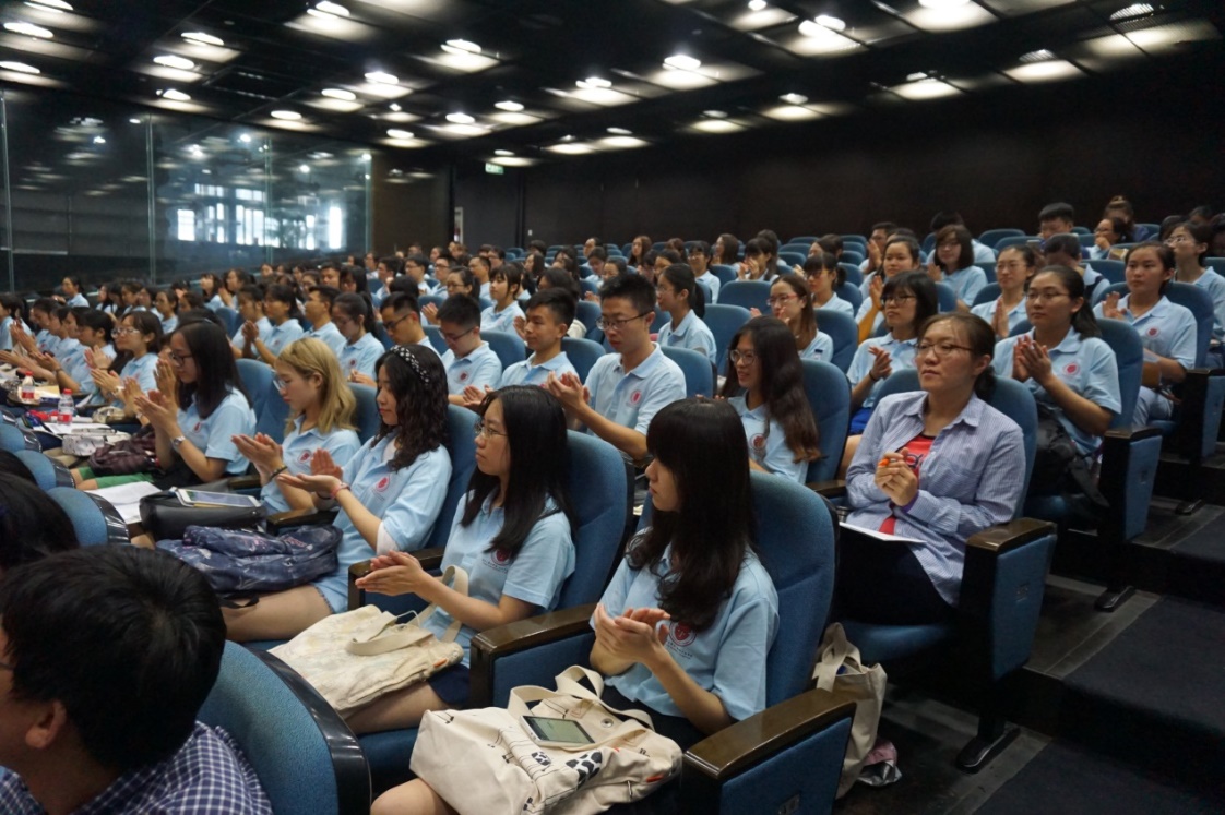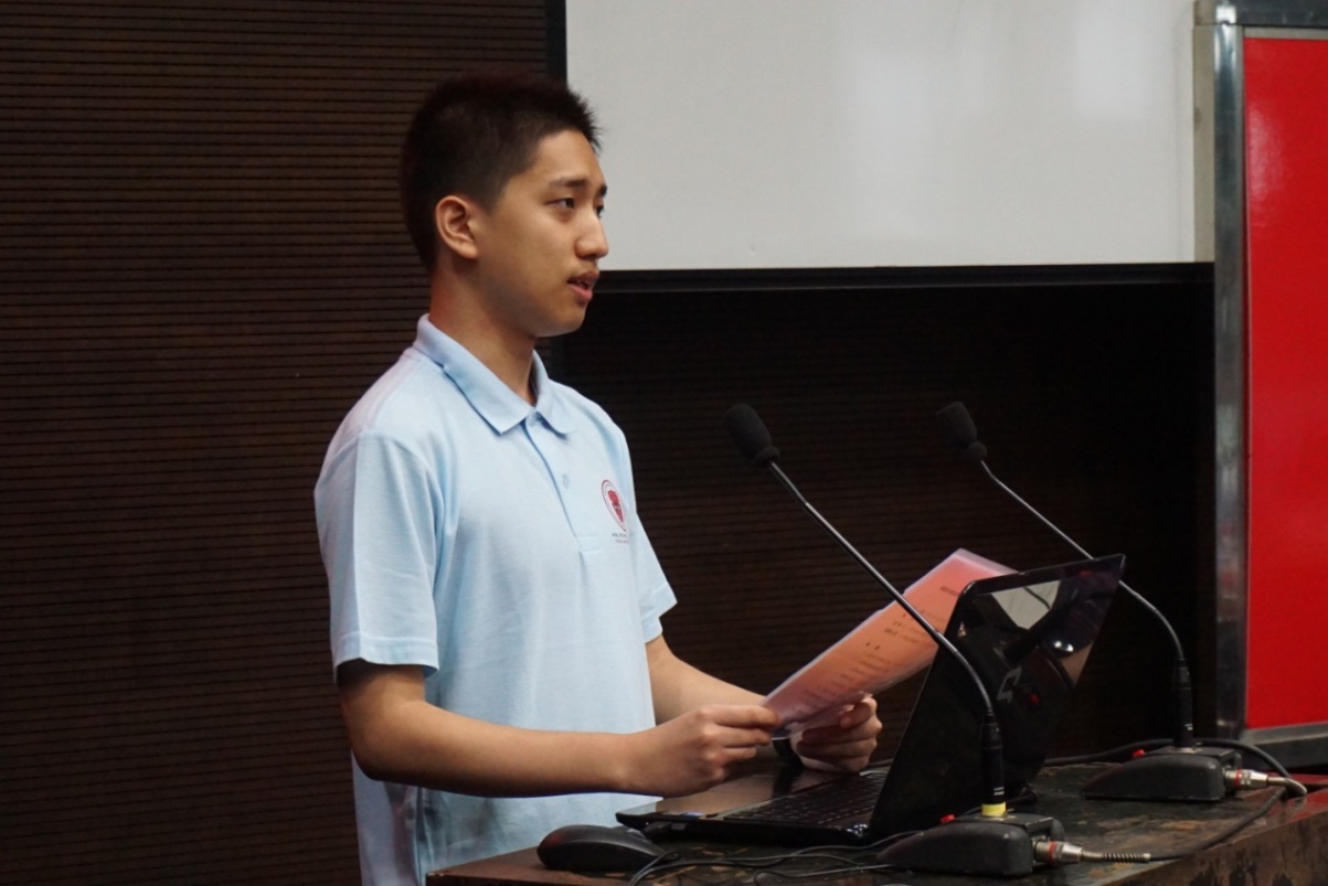 2015级本科生田雪纯同学代表老生进行发言。她向学弟学妹们强调了学习的重要性,希望大家要利用好资源,比如图书馆和选修课,多多读书,多和同学讨论。同时她谈到了自主自立,同学们要成为自己,把握好手中的选择权,活出属于自己的精彩,而不是人云亦云,盲目地混日子。