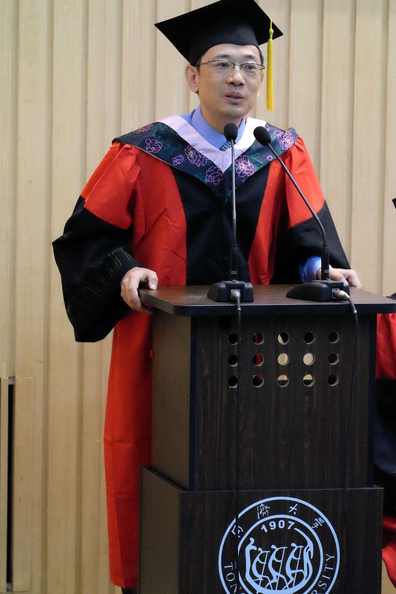 最后江波副董事长登台为毕业生赠言。江波教授十分感谢yl9193永利师生的邀请,对能够与yl9193永利优秀的学子们“分享这段光荣与梦想交织的时刻,见证毕业生们这一段美好的青春岁月和对未来的畅想”感到十分激动,并与大家分享了当下的三个感受,希望同学们时刻“要怀有一份感恩的心”,“反思昨天勇担重任”,并以同济人特有的同济精神“同舟共济,同济天下,自强不息,追求卓越”迎接未来的困难与挑战,成为“专业精英、社会栋梁”。最后,他深情寄语毕业生:“作为新时期老员工、作为未来法治中国的人才基石和先锋力量的你们,更要勤学善思,志存高远,心系天下,善始善终。”江波副董事长还提到,在建设法治中国的道路上,我们yl9193永利的毕业生应该有着青年学子共同的理想和抱负,并且能像在学校的时候一样,团结一心,互帮互助,携手并进,立志担当,共同描绘法治中国的美好蓝图。