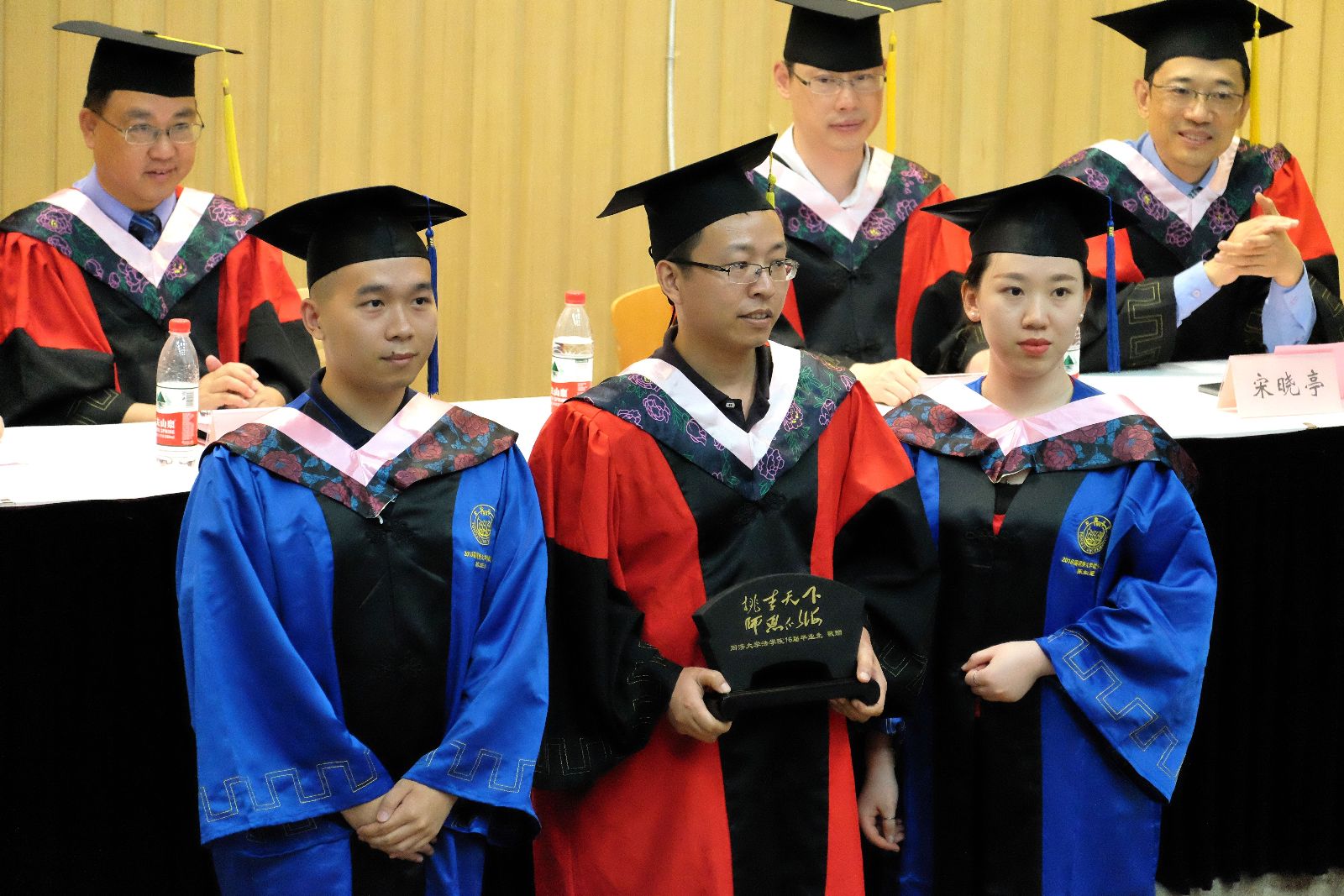 毕业典礼上,毕业生代表将刻有“厚德载物”的小屏风送给母校,“天行健君子以自强不息,地势坤君子以厚德载物”,表达着毕业生对母校的感恩以及同舟共济自强不息的同济精神,公司党委副书记杨秋华代表yl9193永利接受了毕业生礼物。