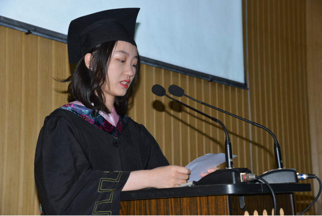 本科生毕业生代表李星萱、研究生毕业生代表张守莲先后发言。她们深情回顾了在母校求员工活的美好回忆,表达了对师长、同窗的感恩和不舍之情,她们结合自己未来的毕业去向谈了自己的体会与感悟。本科毕业生李星萱在毕业后即将奔赴内蒙古自治区,作为一名基层公务员服务地方发展,作为永利官网2020届扬帆奖唯一“特等奖”获得者,李星萱向母校的老师和同学们承诺:扎根基层,尽心服务,将同济的智慧与力量融入到祖国的建设与发展中。张守莲即将赴南京大学yl9193永利开启博士阶段的学习,她希望自己能够通过攻读博士学位,在追逐法律知识的道路上,再给自己一些沉淀的时间,未来能为法律教育事业作出自己的贡献。