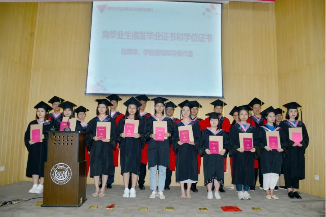 随后,校领导、学院领导和导师代表向在场的全体毕业生拨穗并颁发毕业证书与学位证书。