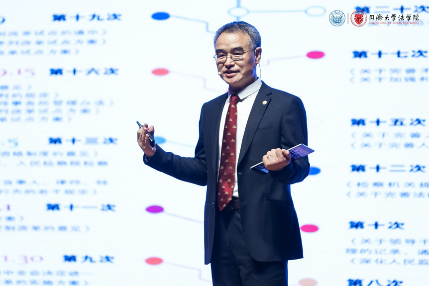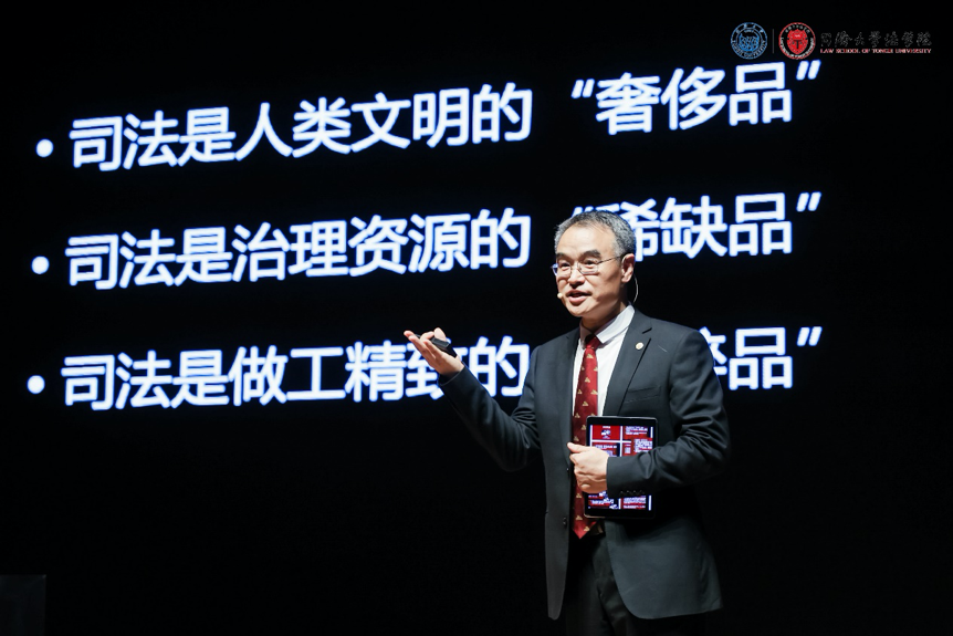 “开学第一课”上,蒋惠岭首先从正义的理论说起,他表示,司法制度是一个为了正义的实现而存在的制度,促进社会公平正义是司法工作的核心价值追求。从一定意义上说,公平正义是司法工作的生命线,司法机关是围护社会公平正义的最后一道防线。从而,引申出司法制度与司法规律,他生动地用“大司法”与“小司法”来比喻司法制度的构成,小司法是围绕正义判断权而形成的大司法制度的核心。而司法规律就是司法之所以成为司法而非其他的标志,其中包含了法律性、独立性、公正性、职业性、终局性等五种核心司法规律和十种一般司法规律。进而,以完成了法治过程的闭环、正义女神的角色、司法是人类文明的“过滤网”、司法公正引领社会公正、司法是法律塑型者为由,阐释了为什么司法是不可或缺的。
