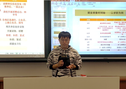 会上,学校就业指导中心朱华珍老师从个人感受和经验角度出发,为毕业生提出建议和要求。她指出,在当前就业形势下,同学们应当注重在简历中将自己的优势资源进行整合,提高简历质量;同时,也要做好经历多轮面试的心理准备。此外,朱老师还提醒同学们,即使确定了就业或者升学方向,也不要把自己局限在一个选择范围里,而要勇于尝试,抓住机会,认真思考,不断拼搏,在决策的同时做好备选方案。