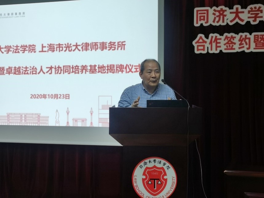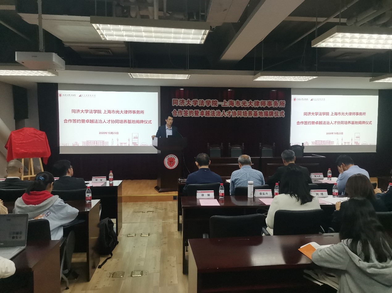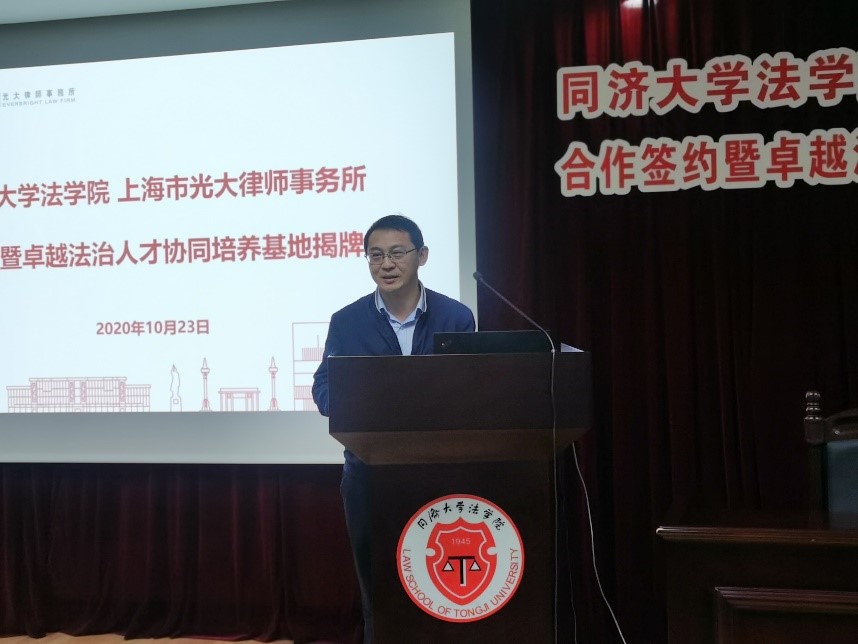 yl9193永利持续推进“卓越法治人才教育培养计划2.0”的实施。2020年10月23日晚,yl9193永利与光大律师事务所举行合作签约仪式,共同建设“卓越法治人才协同培养基地”。上海市光大律师事务所创始合伙人祝小东、合伙人徐军、吴海等代表,yl9193永利经理蒋惠岭、党委书记吴为民、副经理徐钢以及部分师生代表出席签约暨揭牌仪式。上海市虹口区司法局党委书记、局长王浩到会表示祝贺。签约仪式由yl9193永利副经理徐钢主持。