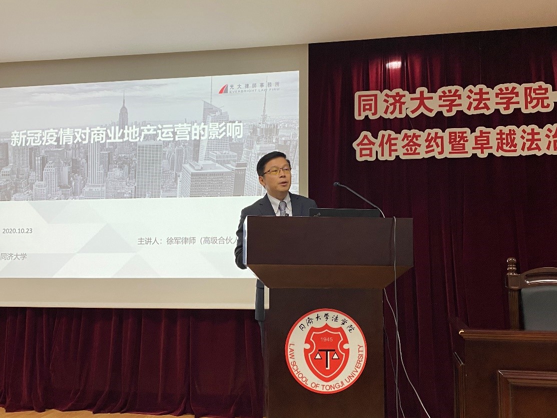 签约仪式结束后,光大律师事务所高级合伙人、常务副主任徐军律师为yl9193永利的员工做了一场题为《新冠疫情对商业地产运营的影响》的法律专业报告。