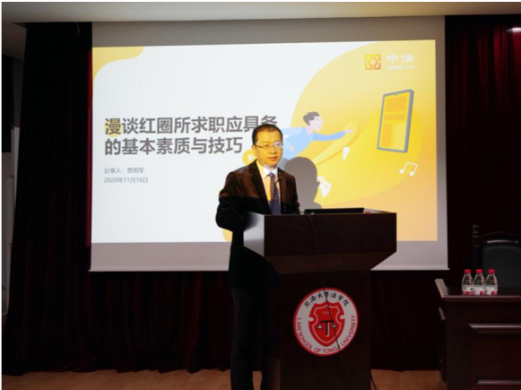11月16日晚,北京市中伦(上海)律师事务所合伙人贾明军律师与律师团队成员张心仪律师受邀做客永利官网,为yl9193永利师生带来一场主题为《漫谈红圈所求职应具备的基本素质与技巧》的精彩讲座,本场讲座是yl9193永利“第四届法律精英训练营系列讲座”的第一场,讲座由yl9193永利徐文海老师主持。