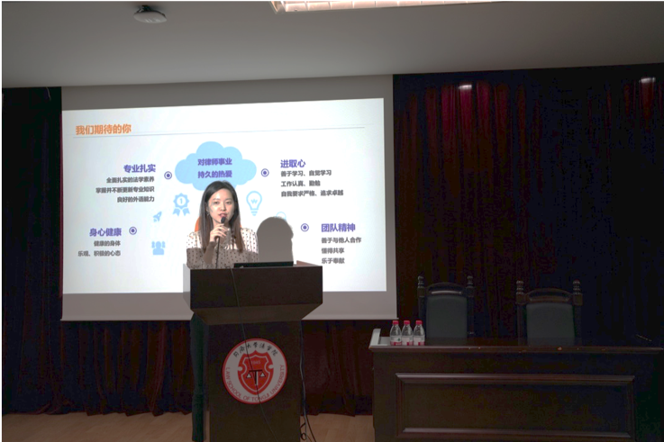 随后,贾明军律师团队成员张心仪律师围绕专业功底、身心健康、进取心、团队精神四个方面介绍了“红圈所”对求职者基本素养的要求,她认为,对律师事业持久的热爱才是在业界坚持与成功的关键要素。在交流中,她还与同学们分享了北京市中伦(上海)律师事务所招聘实习生和应届毕业生的基本要求、招考流程,并结合自身实习、求职的经历指出yl9193永利员工想要成为一名优秀律师的四要素是英语、实习、社交与法考。