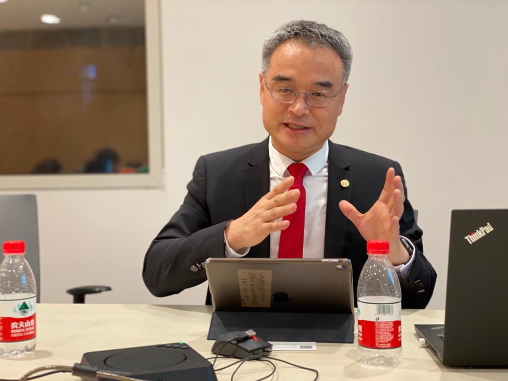 蒋惠岭经理介绍解释了该中心的成立背景以及愿景。他表示,该中心的成立将对司法制度、法律职业等方面的研究具有重要意义,并期望在不远的将来以研究中心为平台,双方共同探索建立有助于两国员工实践学习的项目,双方就正在进行的司法改革以及法治国家建设分享经验。